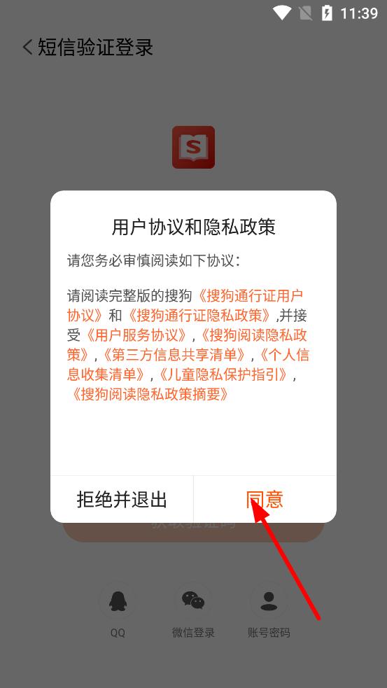 2、在登錄相關(guān)操作中,彈出用戶協(xié)議和隱私政策提示框,點(diǎn)擊同意按鈕,接受相關(guān)協(xié)議。