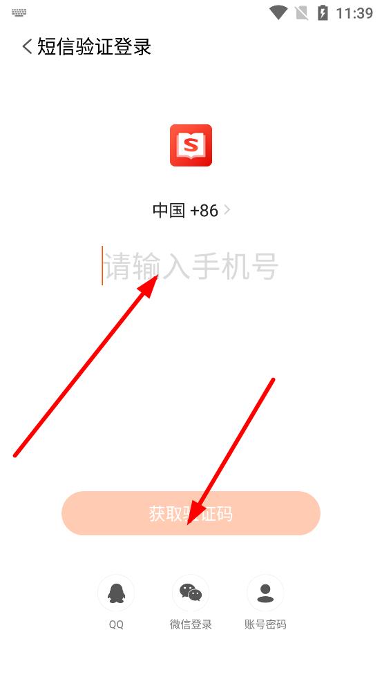 3、進(jìn)入短信驗(yàn)證登錄界面,在輸入框中填寫手機(jī)號(hào)碼,再點(diǎn)擊獲取驗(yàn)證碼,后續(xù)輸入驗(yàn)證碼完成登錄 。