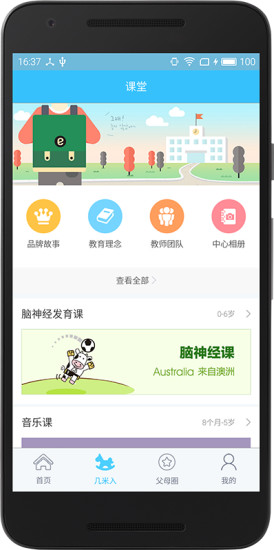 針對不同的服務(wù)需求,幾米入專業(yè)定制開發(fā)了會員專屬APP,在線預(yù)約上課時間、課程內(nèi)容,在線收聽課程專屬音樂,還開設(shè)有在線父母課堂專區(qū)、在線視頻專區(qū)、在線閱讀專區(qū),并正逐步拓展以商業(yè)中心店為核心,輻射周邊的社區(qū)上門早教服務(wù),讓你能夠全方位享受幾米入的專業(yè)早教服務(wù)。