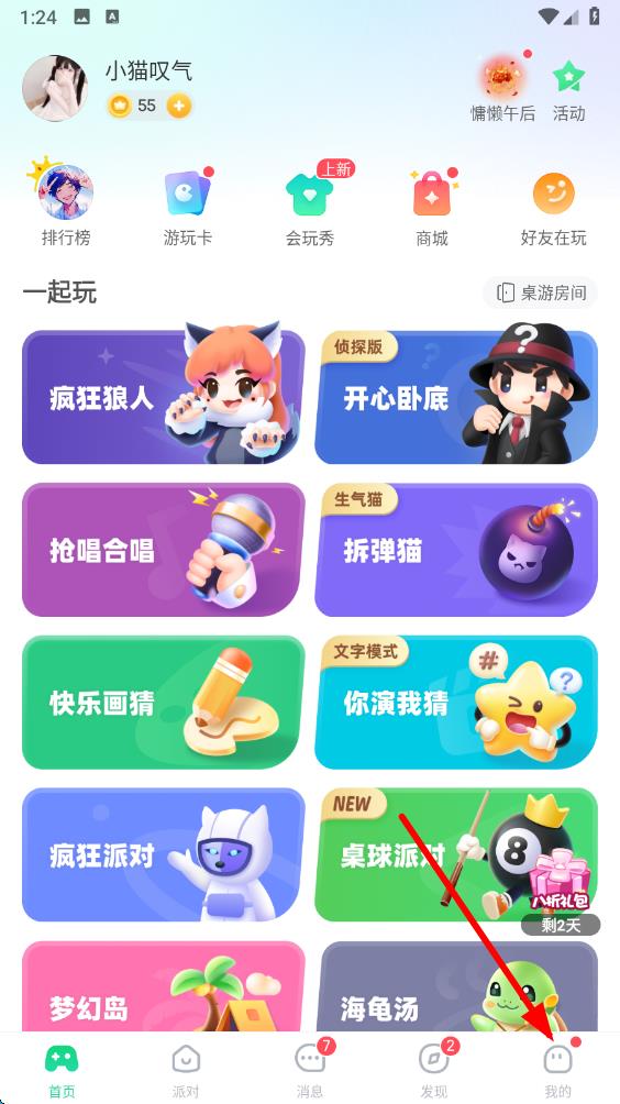 1、打開會玩APP,在首頁點擊右下角的我的按鈕,進入個人頁面。