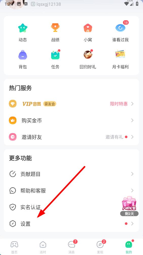 2、在個人頁面中,找到并點擊設(shè)置的選項,進入設(shè)置界面。