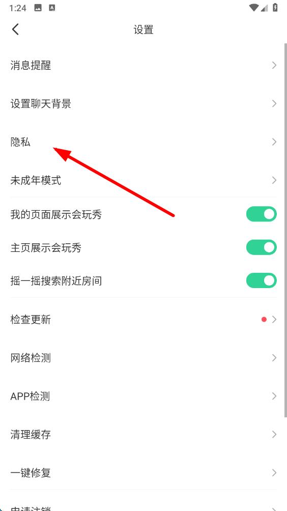 3、在設(shè)置界面里,點擊隱私選項,進入隱私設(shè)置頁面。