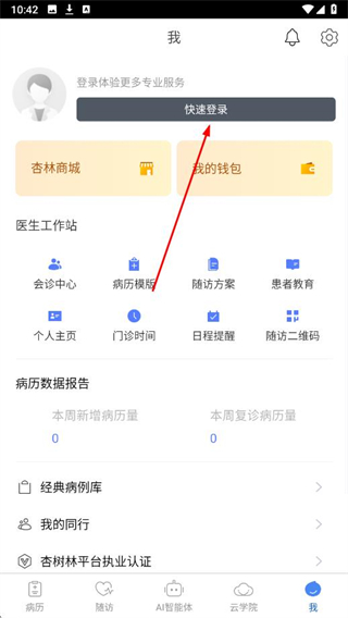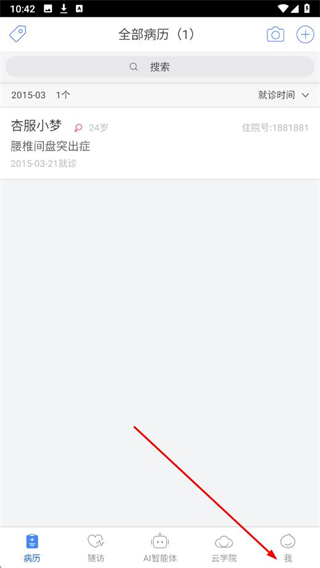 1、打開病歷夾經(jīng)典版APP,點擊導(dǎo)航欄中的我的。