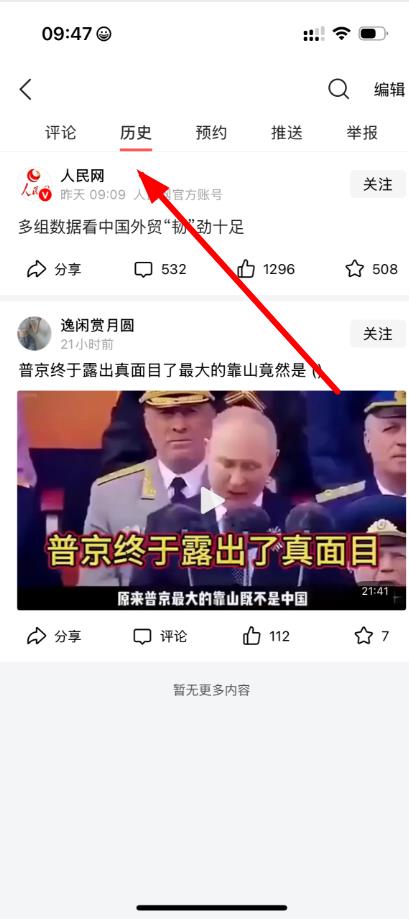3、進(jìn)入瀏覽歷史頁(yè)面后,點(diǎn)擊歷史標(biāo)簽,即可查看之前瀏覽過(guò)的內(nèi)容。