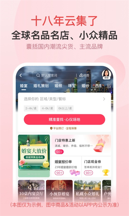 匯聚全球業(yè)內(nèi)頂級(jí)商家結(jié)婚相關(guān)品牌商家,婚宴預(yù)訂、婚紗攝影、珠寶飾品、婚慶策劃、婚紗禮服、婚禮用品、婚車租賃、蜜月旅游等一站式惠購(gòu)。