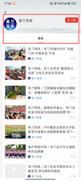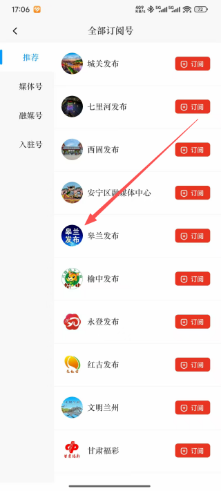 3、在全部訂閱號(hào)列表中,找到想要訂閱的訂閱號(hào),例如皋蘭發(fā)布。