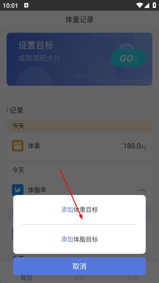 2、在彈出的選項(xiàng)中,點(diǎn)擊添加體重目標(biāo)。