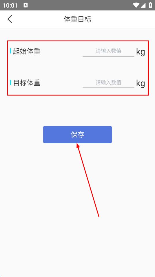 3、在起始體重和目標(biāo)體重輸入框中輸入對(duì)應(yīng)的數(shù)值,點(diǎn)擊保存按鈕。