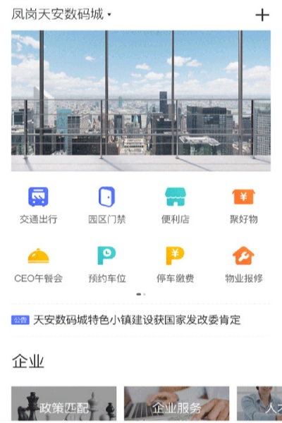 為企業(yè)和個人提供招商租賃、物業(yè)管理、安防門禁、智慧停車、園區(qū)服務、企業(yè)服務、在線繳費、日常消費、社交活動等服務。