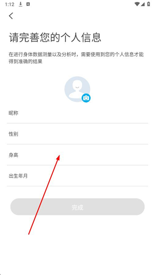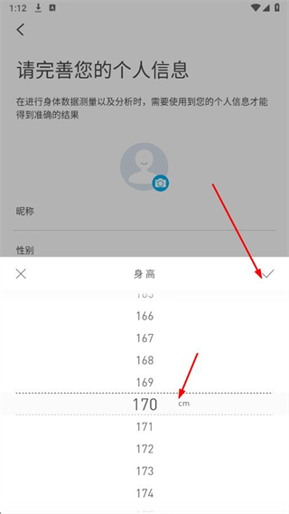 3、在完善個人信息頁面,點擊身高,進入身高選擇界面。