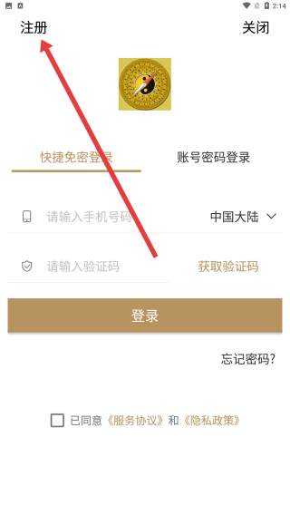 2、在進(jìn)入到登錄頁面后點(diǎn)擊左上角注冊(cè),切換至注冊(cè)界面。