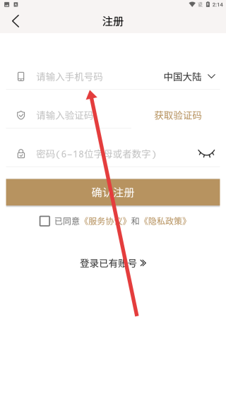 3、在注冊(cè)頁需要按照順序填寫先手機(jī)號(hào)碼,填寫完信息后完成賬號(hào)的注冊(cè)。