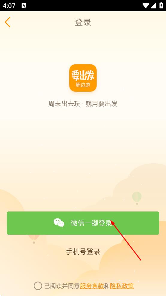 4、在登錄方式選擇頁面,選擇“微信一鍵登錄”,勾選“已閱讀并同意服務(wù)條款和隱私政策”,然后按照提示完成微信授權(quán),即可完成賬號登錄操作。