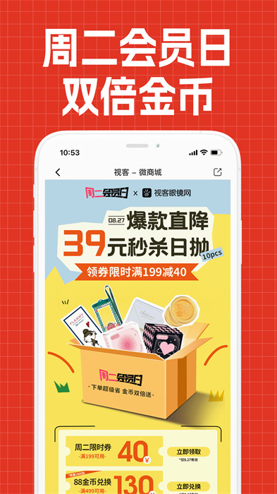 客戶端上購眼鏡送金幣,金幣免費換優(yōu)惠券,與PC和微信商城同步哦!