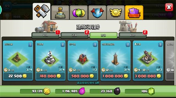 1、建筑順序:實(shí)驗(yàn)室、法術(shù)工廠、黑暗訓(xùn)練營(yíng)、兵營(yíng)、訓(xùn)練營(yíng)、黑暗藥水法術(shù)工廠、電塔、防空火箭、法師塔、迫擊炮、箭塔、加農(nóng)炮,資源類、城墻最后升級(jí);