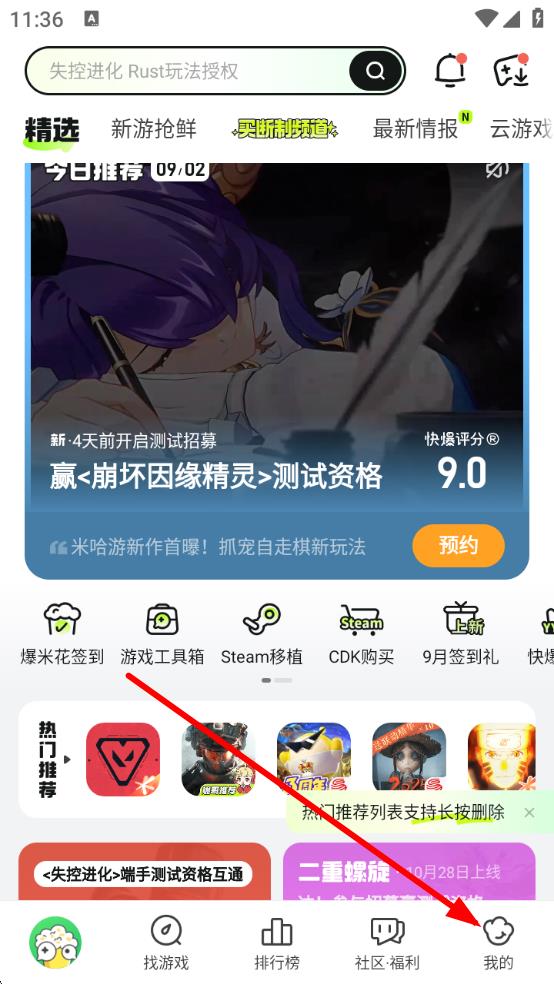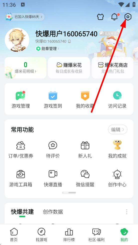 1、打開(kāi)好游快爆APP,點(diǎn)擊底部導(dǎo)航欄中的我的選項(xiàng),進(jìn)入個(gè)人中心頁(yè)面。