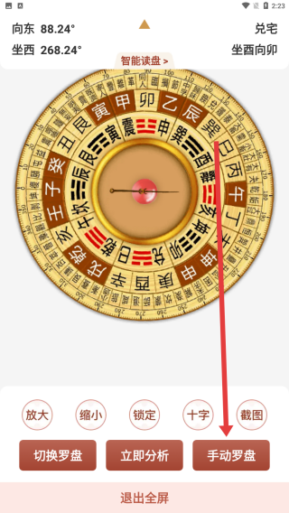 2、全屏模式下點(diǎn)擊手動(dòng)羅盤(pán),可以切換為手動(dòng)調(diào)節(jié)羅盤(pán)的模式。