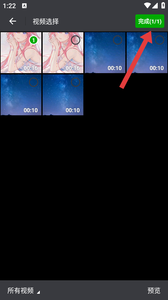 2、在視頻選擇界面,勾選要轉(zhuǎn)換的視頻后,點擊右上角完成,進(jìn)入選擇頁面。