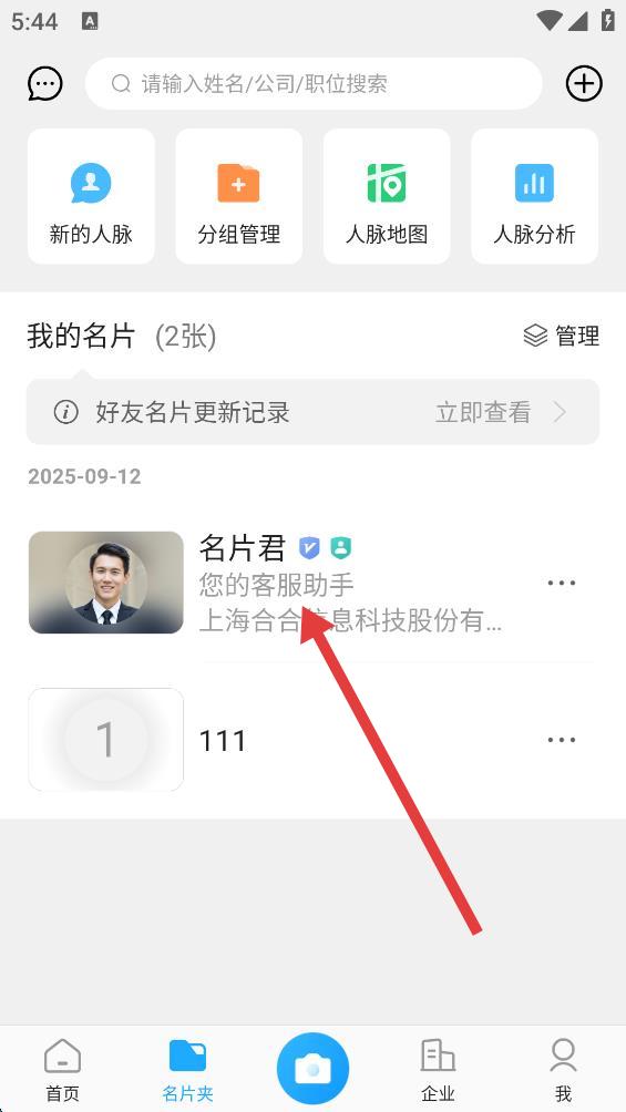 2、在名片夾里找到想要屏蔽的人的名片,點擊進(jìn)入該名片的詳情頁面。