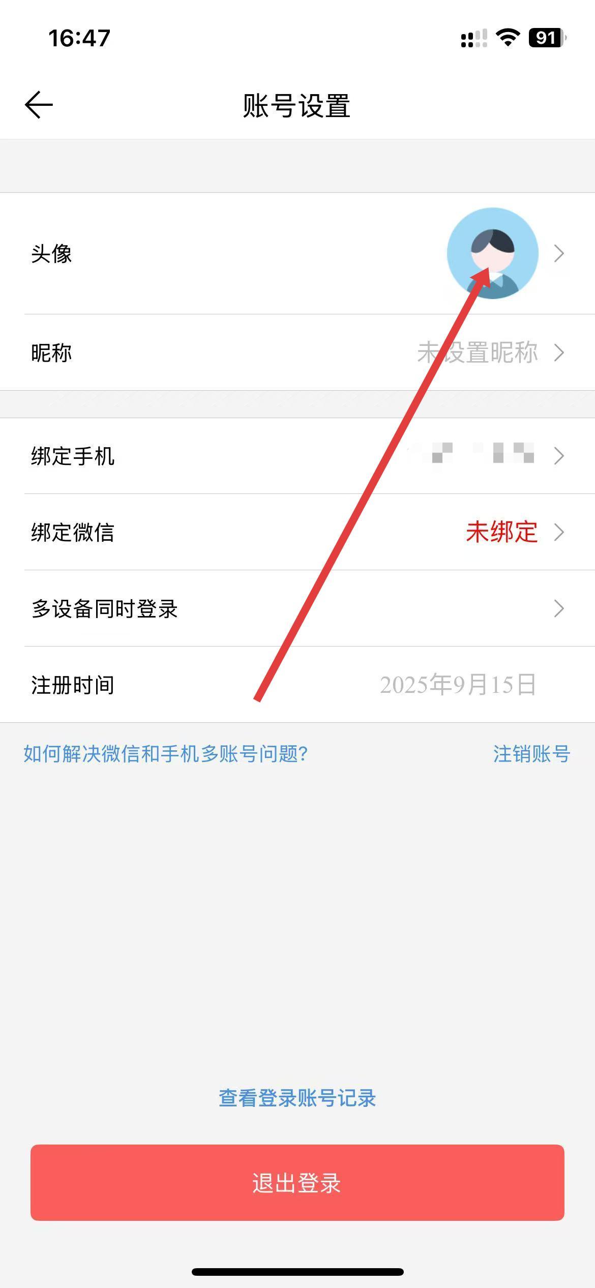 1、在個(gè)人中心頁(yè)面中,點(diǎn)擊頭像區(qū)域,進(jìn)入賬號(hào)設(shè)置頁(yè)面。
