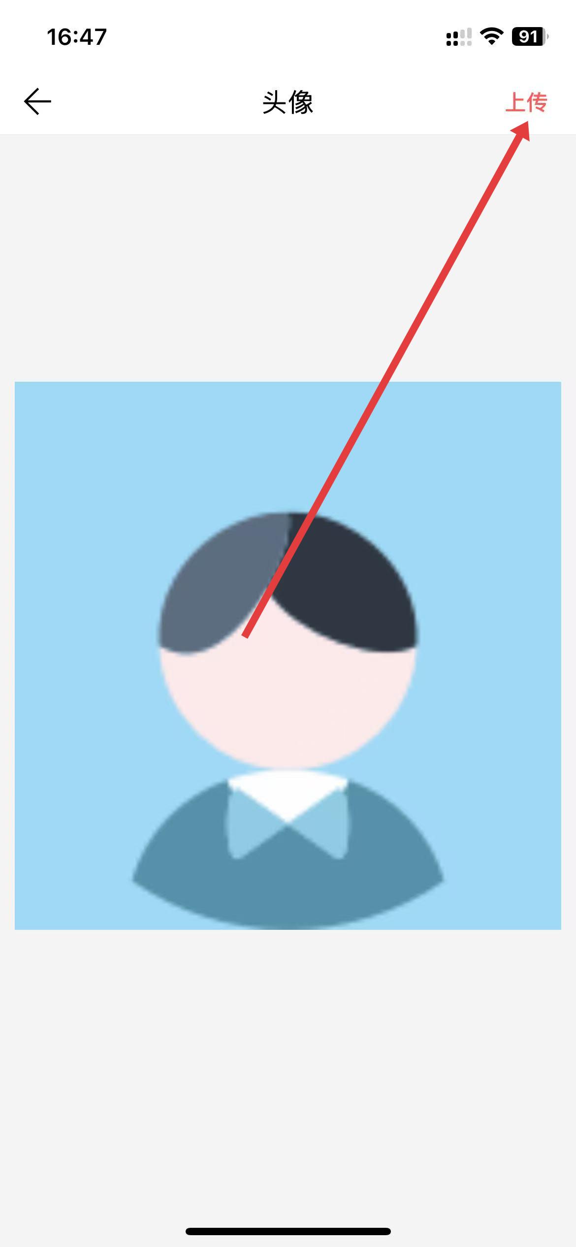 3、在賬號(hào)設(shè)置的頭像選項(xiàng)里,點(diǎn)擊右上角上傳按鈕。