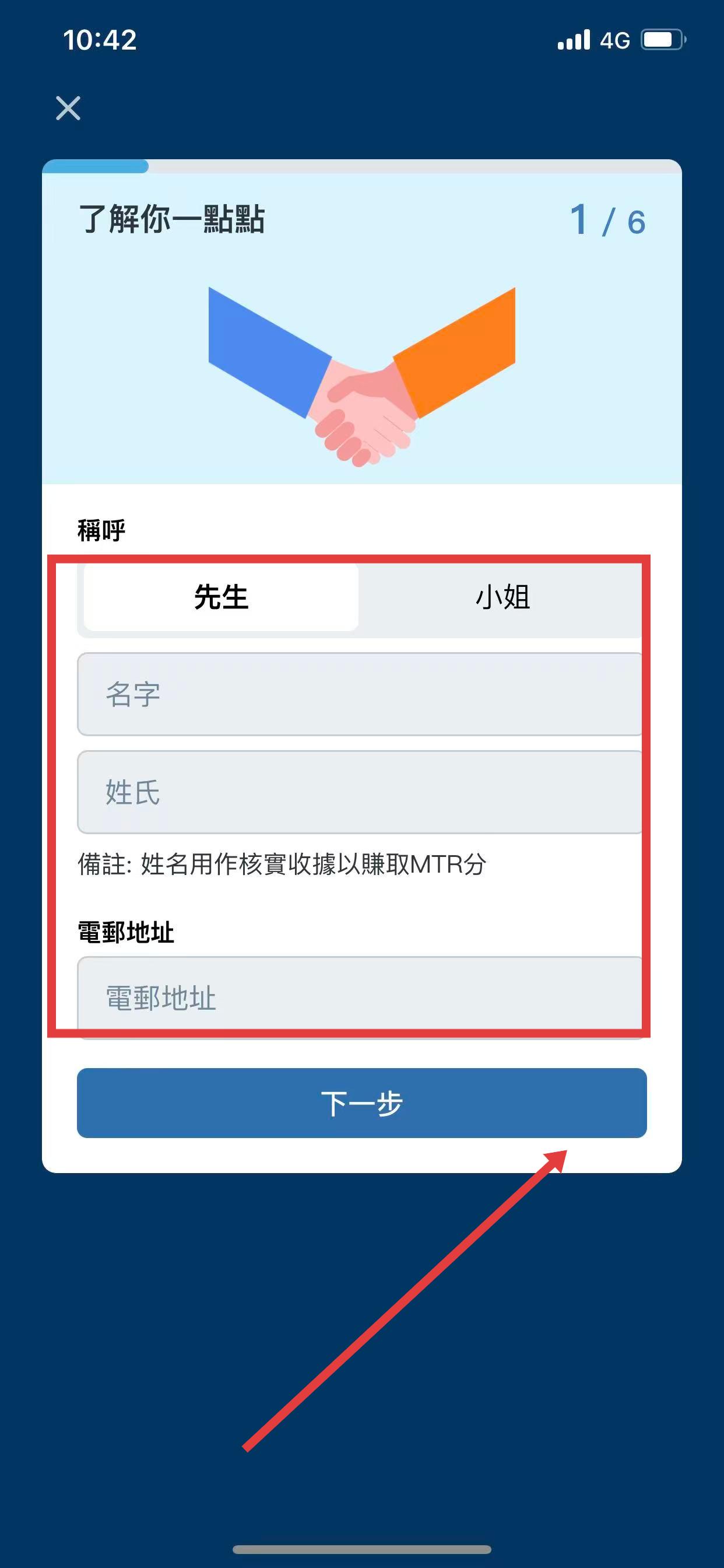 3、在了解你一點點頁面,選擇稱呼,輸入名字、姓氏和電郵地址,點擊下一步。