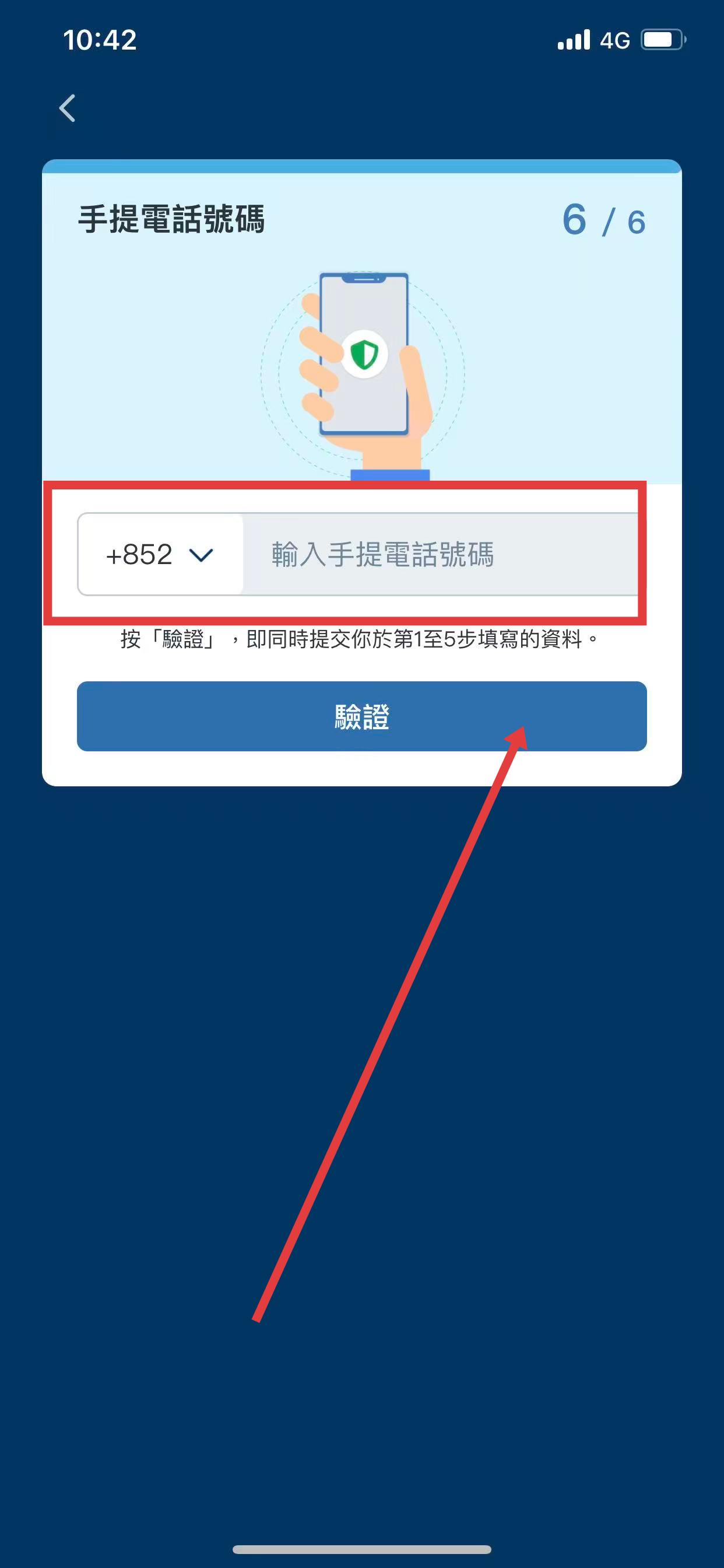 8、在手提電話號碼頁面,選擇區(qū)號并輸入手提電話號碼,點擊驗證,按照后續(xù)提示完成注冊驗證流程。