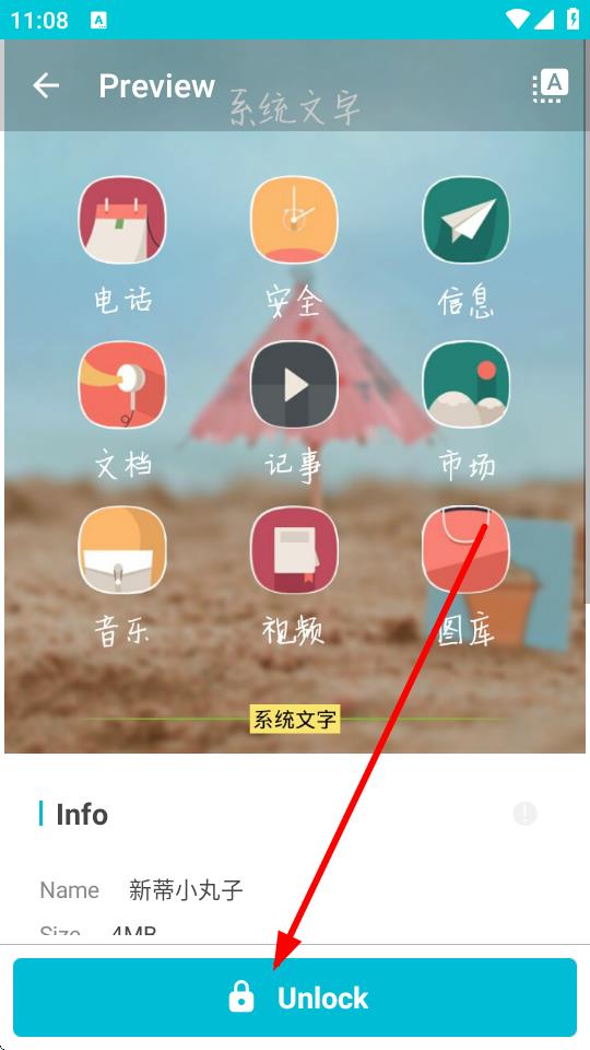 4、下載完成后若字體需解鎖,在預(yù)覽界面點(diǎn)擊Unlock按鈕按提示操作即可使用該字體。