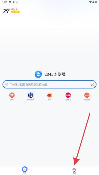 1、打開2345瀏覽器APP,在首頁(yè)內(nèi)點(diǎn)擊下方我的圖標(biāo)。
