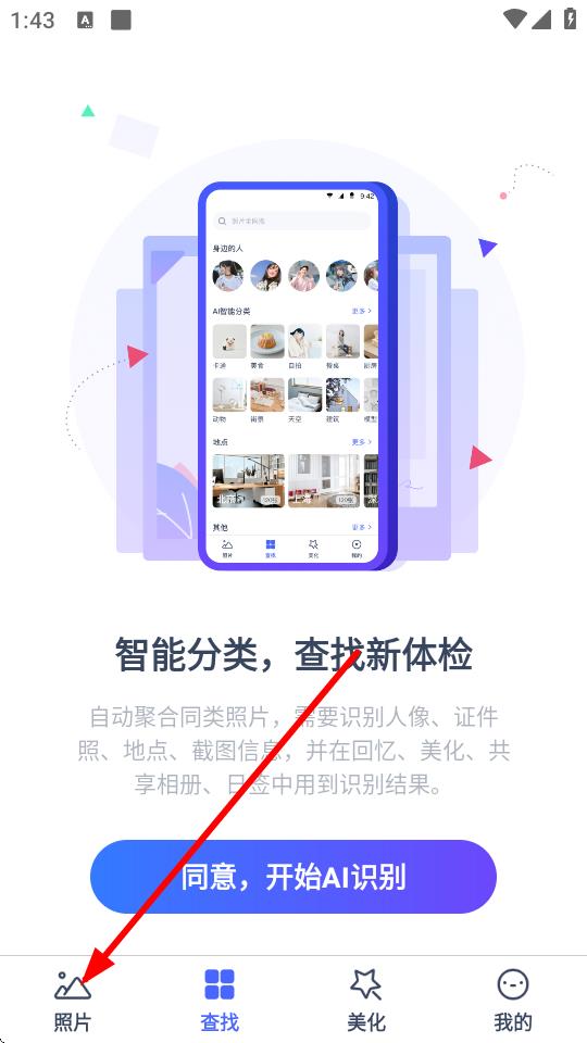 1、打開相冊(cè)管家APP,點(diǎn)擊底部導(dǎo)航欄中的照片選項(xiàng)。