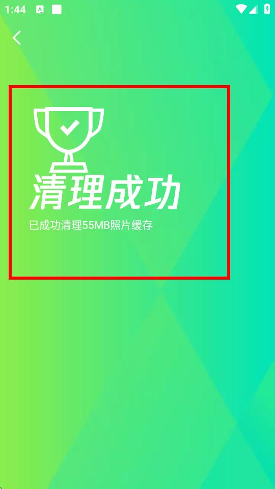 4、等待清理完成,界面會(huì)提示清理成功,以及清理的緩存空間大小。