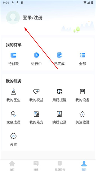 2、在我的頁面點擊登錄/注冊區(qū)域,進入登錄頁面。