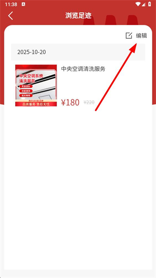 3、在瀏覽足跡界面中,點(diǎn)擊右上角的編輯按鈕。