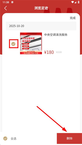 4、勾選要?jiǎng)h除的瀏覽記錄,然后點(diǎn)擊右下角的刪除按鈕即可刪除瀏覽記錄。