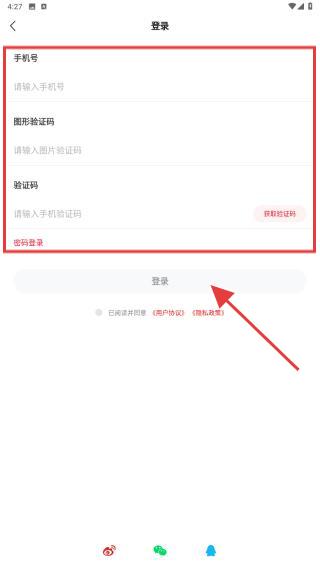 2、輸入手機(jī)號(hào)、點(diǎn)擊獲取驗(yàn)證碼、填寫收到的6位短信驗(yàn)證碼,再點(diǎn)擊登錄即可到軟件首頁。