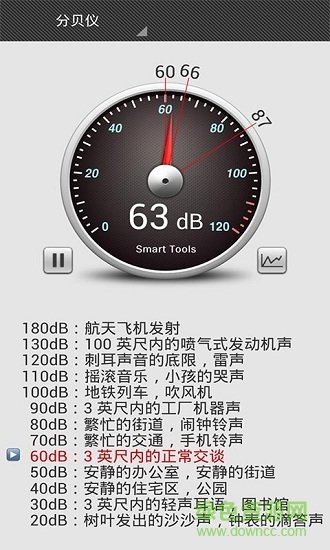 2、通過這款小工具,你就能夠輕松的測量出當(dāng)前環(huán)境的噪聲水平,操作簡單、使用方便!