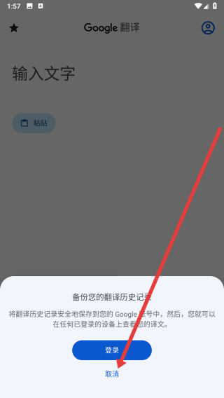 1、進(jìn)入到谷歌翻譯app后,可以點(diǎn)擊取消按鈕開始使用。