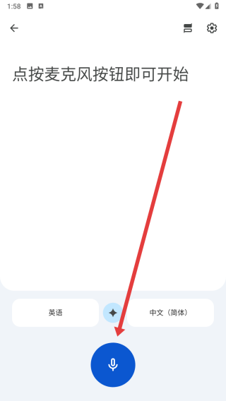3、在進(jìn)入到語音翻譯頁面時(shí),可以點(diǎn)擊下方麥克風(fēng)按鈕開始輸入語音。