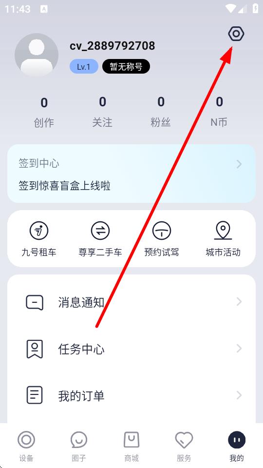 2、在我的頁面,點(diǎn)擊右上角的設(shè)置圖標(biāo)。