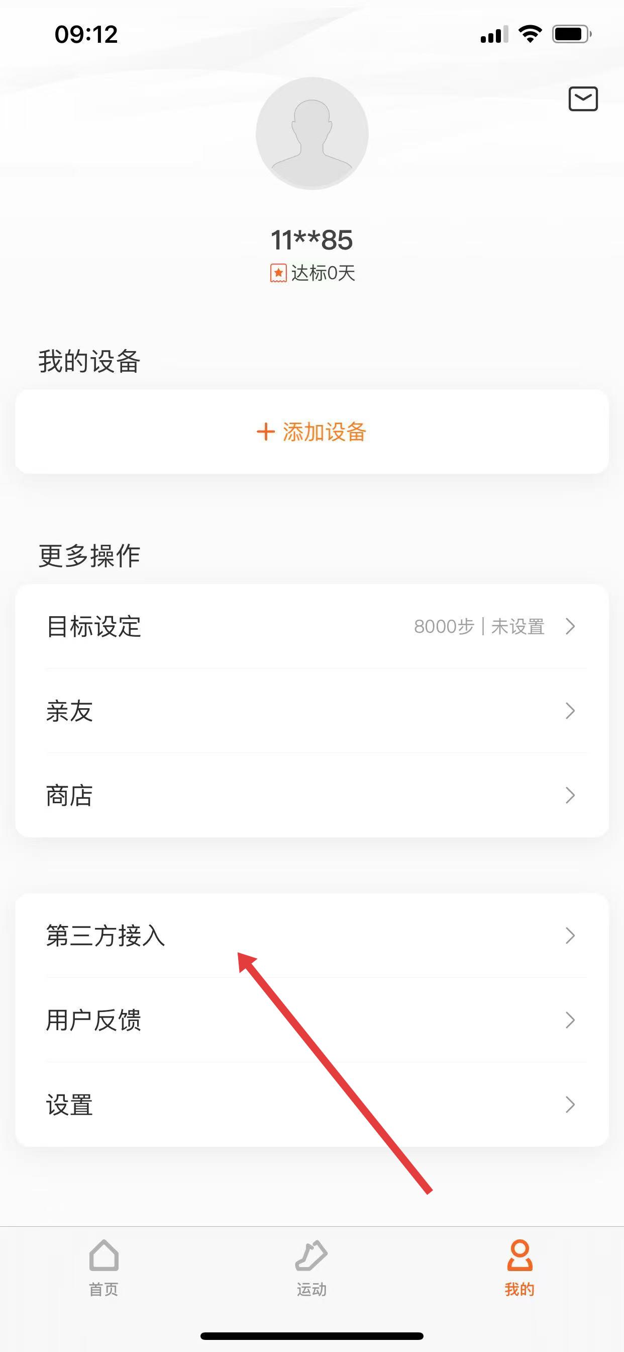 1、打開小米運動健康A(chǔ)PP,點擊頁面右下角「我的」,進(jìn)入個人中心后,選擇「第三方接入」選項。