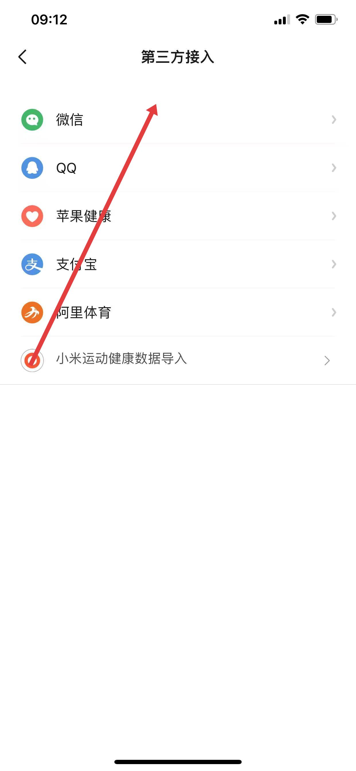 2、在第三方接入界面,點擊「微信」,跳轉(zhuǎn)至上傳步數(shù)到微信的頁面。