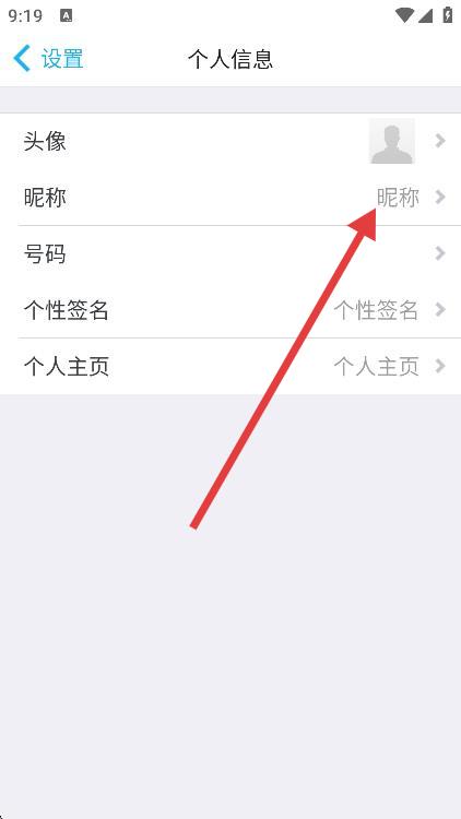 3、進(jìn)入個人信息頁面后,點(diǎn)擊昵稱選項(xiàng)。