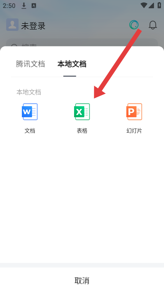 2、在彈出的菜單中,需要選擇表格的選項(xiàng),點(diǎn)擊綠色Excel的圖標(biāo),進(jìn)入新建的表格編輯頁面。