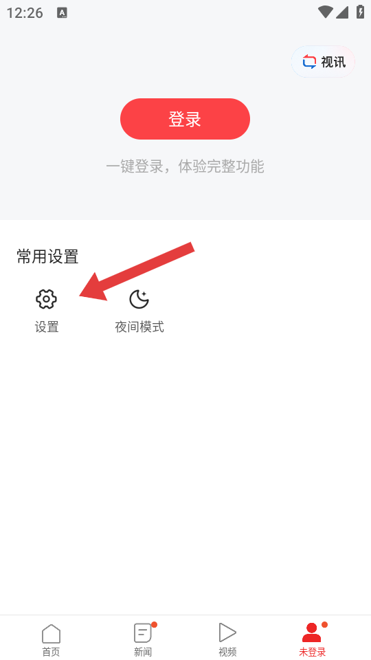 1、打開一點(diǎn)資訊APP,需要點(diǎn)擊底部未登錄,進(jìn)入個(gè)人的界面。