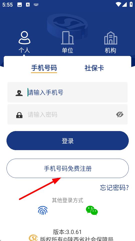 1、進入APP登錄頁,選手機號碼登錄方式,點擊手機號碼免費注冊,跳轉(zhuǎn)至手機注冊頁面。
