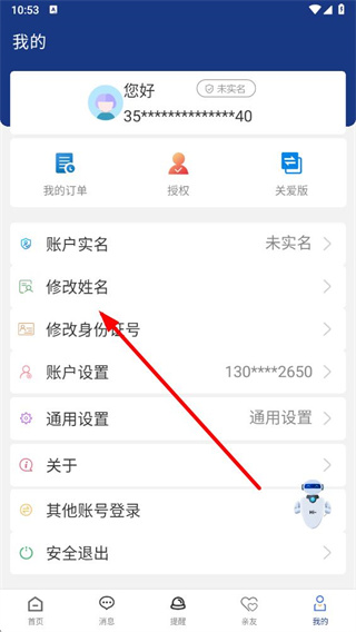 2、在我的頁面,點擊修改姓名選項,進入修改姓名頁面。
