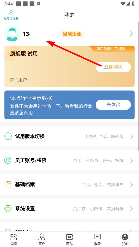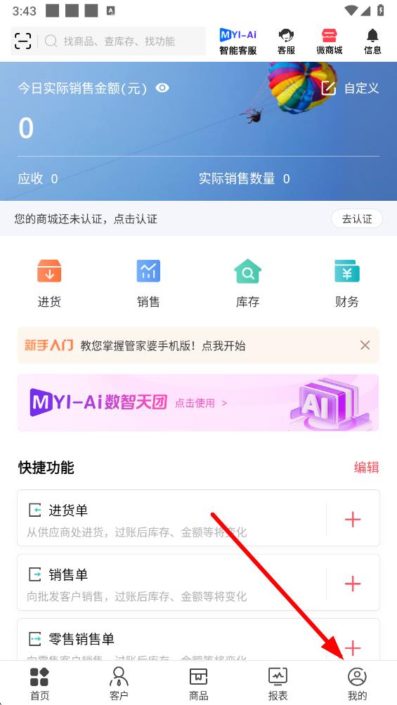 1、打開管家婆app,點擊底部導(dǎo)航欄最右側(cè)我的選項,進入個人相關(guān)界面。
