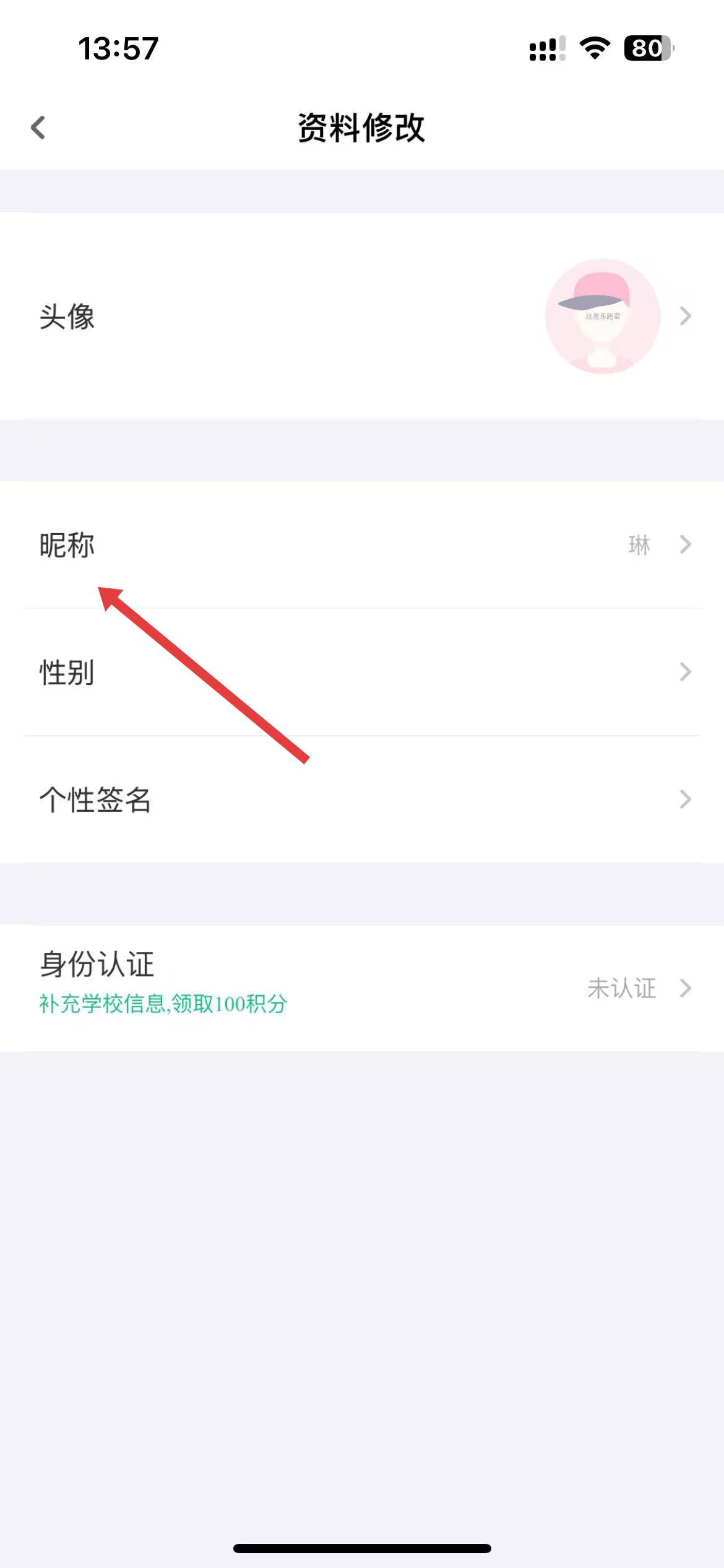 4、在資料修改界面里,點擊昵稱選項,進入修改昵稱頁面。