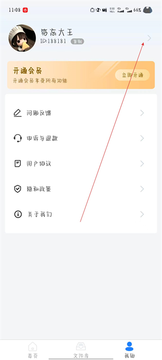 1、打開風(fēng)云恢復(fù)大師應(yīng)用,點擊我的頁面右上角的箭頭。
