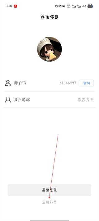 2、在我的信息頁面中,點擊注銷賬號選項。